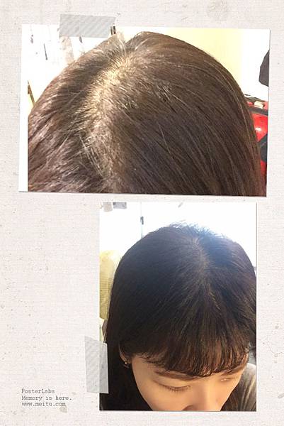使用前先拍幾張比對一下,整天下來頭皮較油外,接近根部的髮絲都變得扁褟無型。