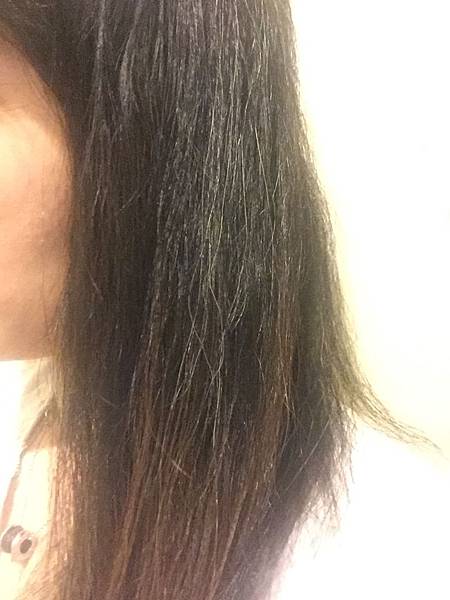 第一天洗完吹乾後,髮絲雖然還是毛躁,但有光澤。